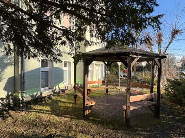 Das sich erhaben präsentierende gepflegte Mehrfamilienhaus fügt sich harmonisch in die gewachsene bürgerliche Atmosphäre dieser Wohngegend ein. 4 separate Hauseingänge führen zu den 7 WE in die unterschiedlichen Wohnbereiche, von der Einraum- bis zur Sechsraumwohnung mit großem Balkon. Für die Mieter stehen ausreichend Garagen- und Stellplätze für ihre Fahrzeuge zur Verfügung. Auch wertet die gesamte Außenanlage mit ihrer Bepflanzung, dem gemeinsam nutzbaren Mietergarten und Wäscheplatz die Wohnanlage auf. Für den Mieter der straßenseitigen EG-WE steht sogar ein eigener Vorgarten mit Gartenpavillon zur Verfügung. Mit der umfangreichen Sanierung in 1998 beginnend, wurden einzelne Wohnbereiche und die Heizung immer weiter überarbeitet. Auch stehen Hausmeisterarbeits- und Abstellräume bei Bedarf im Erdgeschoss zur Verfügung.